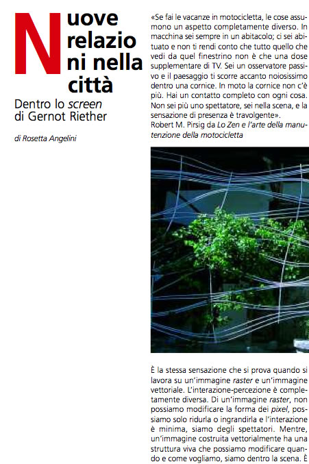 G. Riassumendo, forse, se il raster è il mondo della "RAPPRESENTAZIONE", un mondo che buca lo schermo - vedi Fontana o vedi il chiodo di una battaglia navale. Nel mondo raster modalità cognitiva genenerativa il sistema raster e quello della rappresentazione su schermo coincidono.