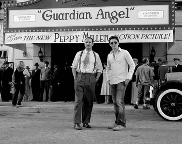 Jean Dujardin insieme al regista Michel Hazanavicius sul set del film The Artist