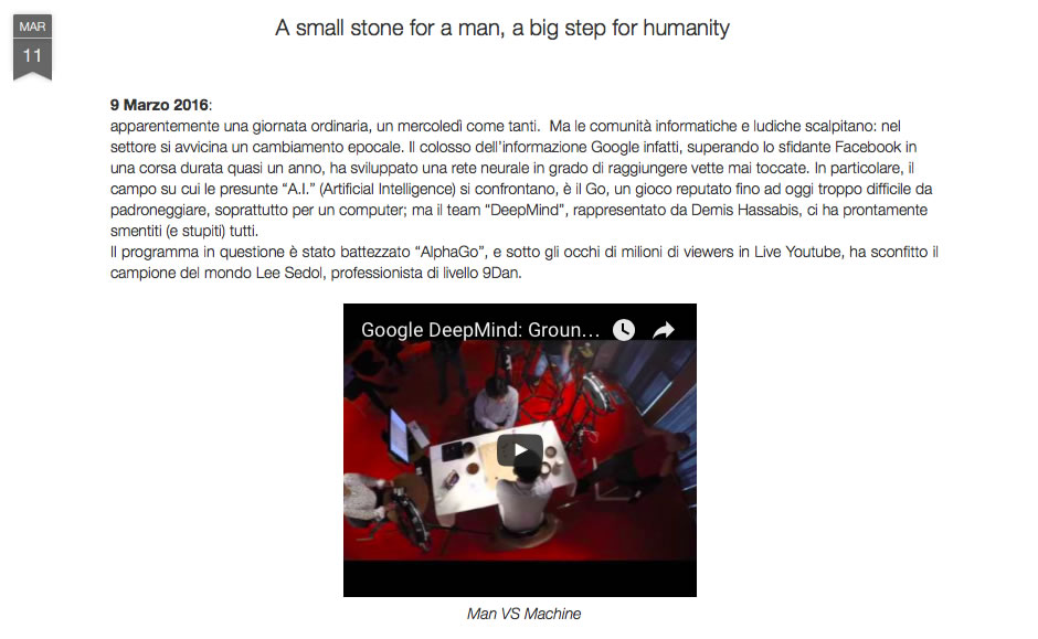 Sull'Intelligenza artificiale e sul fatto che oggi, 2016 9 marzo è accaduto un fatto importante