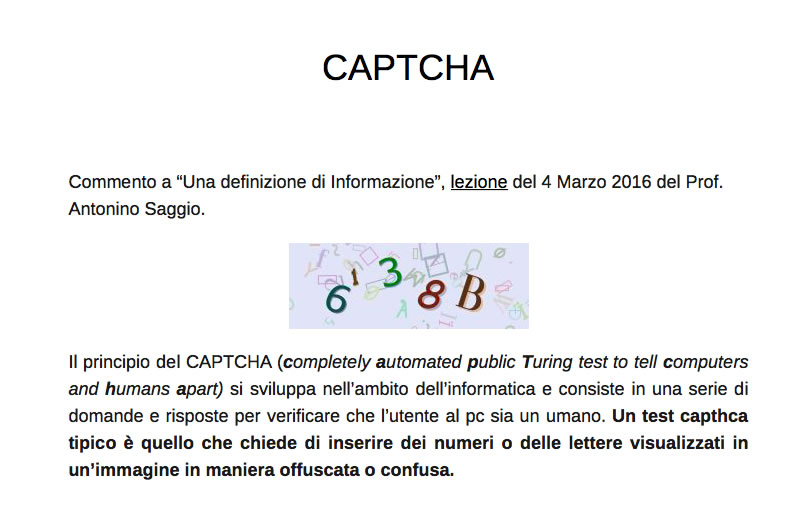 Savina Leggieri 2016 leggi tutto "le immagini sono caratterizzate da confusione e disordine, per cui, esattamente come nel caso del cielo stellato, in cui l’individuazione del Dato consiste nel intercettare l’unica stella che non si muove, l’utente individua il Dato richiesto che gli interessa in quel “caos” di lettere e numeri dell’immagine e li riporta secondo una Convenzione differente (cioè da immagine a testo). In particolare sottolineo che l’immagine Bit Map "
