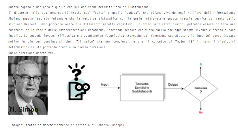 Andare nel proprio blog e aggiungete un commento personale, una riflessione, o comunque un piccolo, medio, grande extragrande input che rifletta sul rapporto tra Crisi Modernità e information technology aggiungete una breve idea con una vostra architettura della crisi e/o sul concetto di Informazione basata sulla lezione di oggi a partire se volete dall'articolo su l'architetto di dicembre 2013 "Architettura come Sistema vivente"