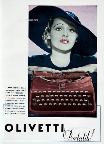 Pubblicità della macchina da scrivere Olivetti "Portatile", illustrazione tratta dalla rivista "L'Illustrazione Italiana" del 1935, pagina XXIX (courtesy e legenda Paola Ruotolo). Una interessante chiave per capire è quanto dice sotto in altro contesto M. Baldissara.. **** Oggi...molto molto di più non è solo la metafora ma la stessa realtà del progetto architettonica che assumemeccanismi e forme Per esempio ved questo progetto ispirato dalle API