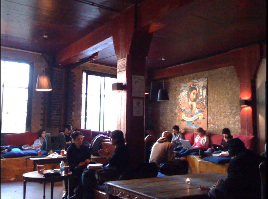 Un bar a Londra, nella zona ex industriale di Brick lane occupata precedente da da una grande fabbrica di Birra e oggi perfetto esempio di molti dei principi della Mixité