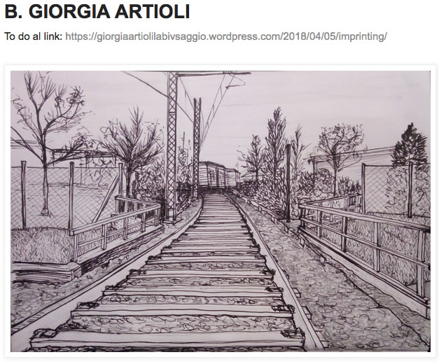 b. realizzare un disegno architettonico o schizzo o anche collage o altre tecniche espressive che rappresenti visivamente il luogo dell'imprinting se volete utilizzando alcune categorie che derivino dalle tecniche che avete sperimentato a proposito dell'esercizio sul'arte