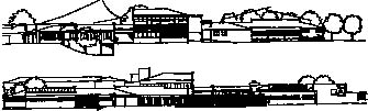 | svilupo lineare ma planimetricamente e volumetricamente frastagliato. La seconda configurazione ospita in una serie di braccia i blocchi aula che vengono avvolti dal verde e proiettati verso la vista del fiume. Il linguaggio espressivo e i dettagli si richiamano alle tessiture in legno dei maestri dell'organico europeo. Malite (pp. 14, 32) infine progetta il dormitorio degli studenti. La configurazione del progetto segue l'idea del piccolo villaggio e articola di conseguenza una sequenza di spazi collettivi, semi-collettivi, privati di nucleo attribuendo a ciascuno una specifica configurazione che si intreccia a quelle di scala maggiore e minore. Attenzione specifica, anche dal punto di vista costruttivo, è posta al blocco base della composizione formato da tre stanze per sei persone con servizi igienici e piccoli locali di studio che in vario modo montato planimetricamente conforma tutti gli spazi del progetto. | |||||||