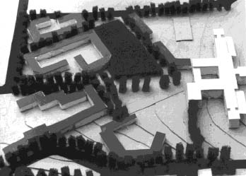 sul terreno, configurano allo stesso tempo gli spazi pubblici al centro