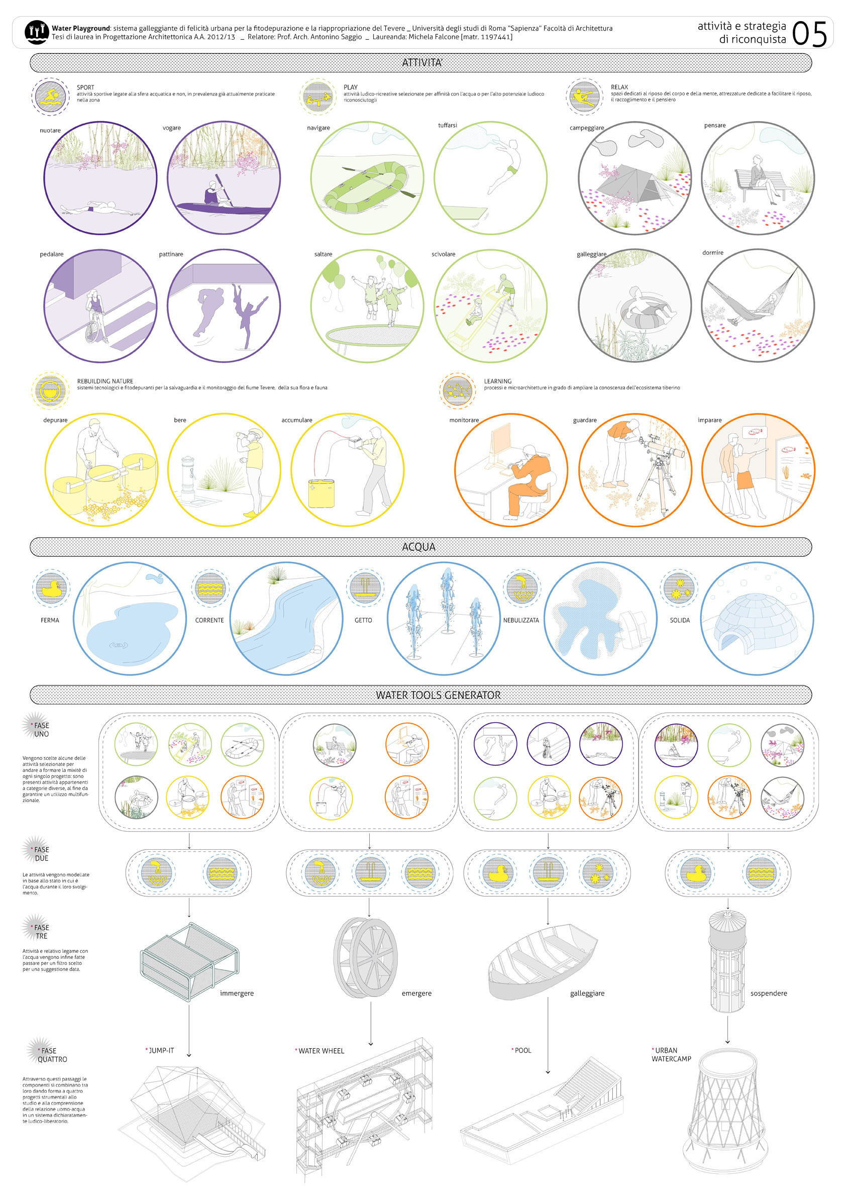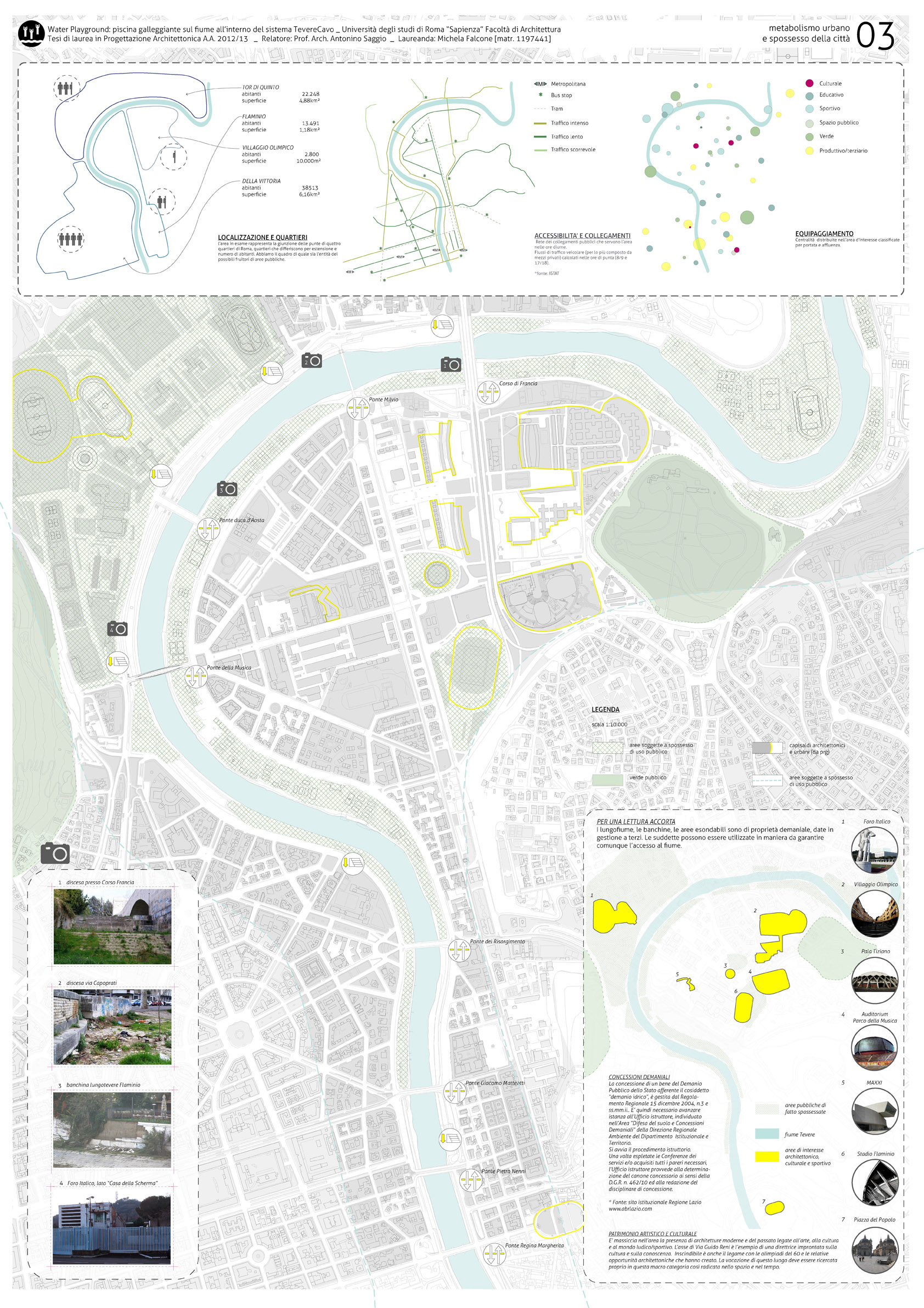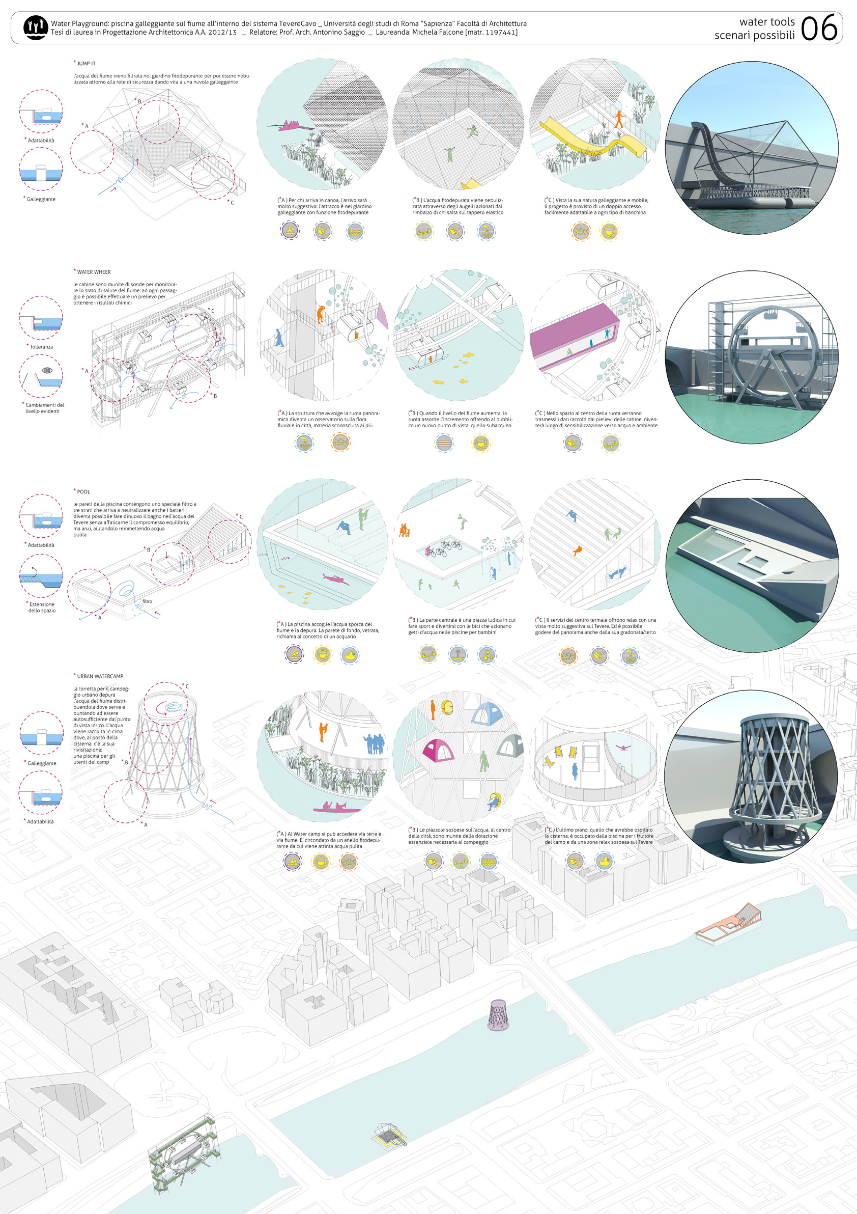 Molte città europee negli ultimi decenni hanno valorizzato fortemente il rapporto con il proprio fiume. Basti per fare un esempio pensare a Zurigo, a Friburgo a Berlino ma anche a molte altre. In questi casi sono stati operati massicci interventi di controllo ambientale e di disnquinamento e quello che per decenni era un ambito della città perduto, abbandonato e spesso pericoloso è tornato ad essere il centro della vita urbana. Gli abitanti vi svolgono attività sportive, ludiche, passeggiate a piedi ed in bicicletta e vi fanno il bagno l'estate. Il gradimento dei cittadini per l'ambiente urbano aumenta di molto i suoi coefficienti positivi. Il progetto "Water Playground" propone una progressiva riappropriazione del Tevere da parte degli abitanti attraverso dispositivi multi funzionali che sono allo stesso tempo ludico-sportivo e disinquinanti. Sono strutture galleggianti e mobili che possono permettere di cominciare ad invertire concretamente la tendenza verso il degrado e cominiciare a riavvicinare il Tevere ai suoi cittadini, in attesa di interventi ancora più generali. Da un'analisi trasversale del primo tratto urbano del corso del fiume, in particolare, è emersa la presenza di una duplice crisi che coinvolge la città di Roma e il modo in cui il Tevere viene percepito dai suoi abitanti: l'impossibilità di fruire direttamente il fiume (per le difficoltà di accessibilità, per l’incuria e per lo stesso inquinamento del fiume) e il silenzioso processo di “spossesso” dello spazio pubblico che a poco a poco sta divorando le zone ripariali ancora presenti in città.