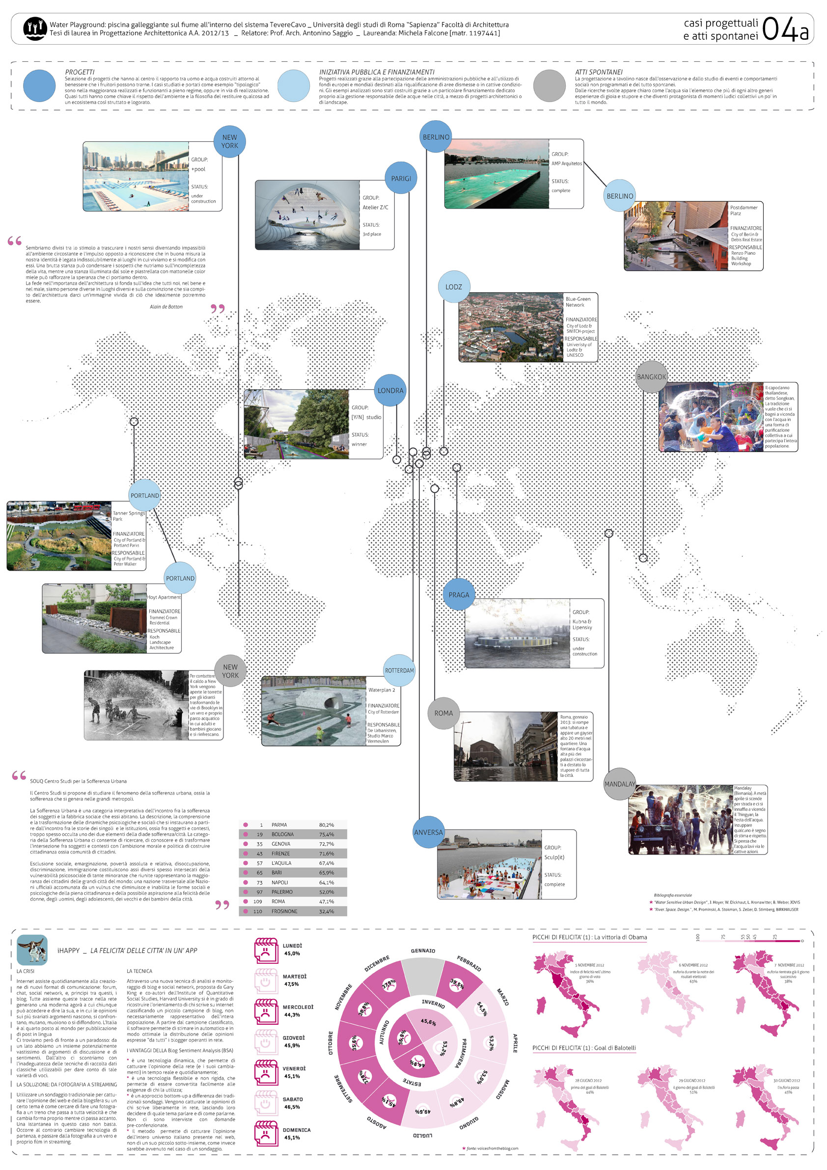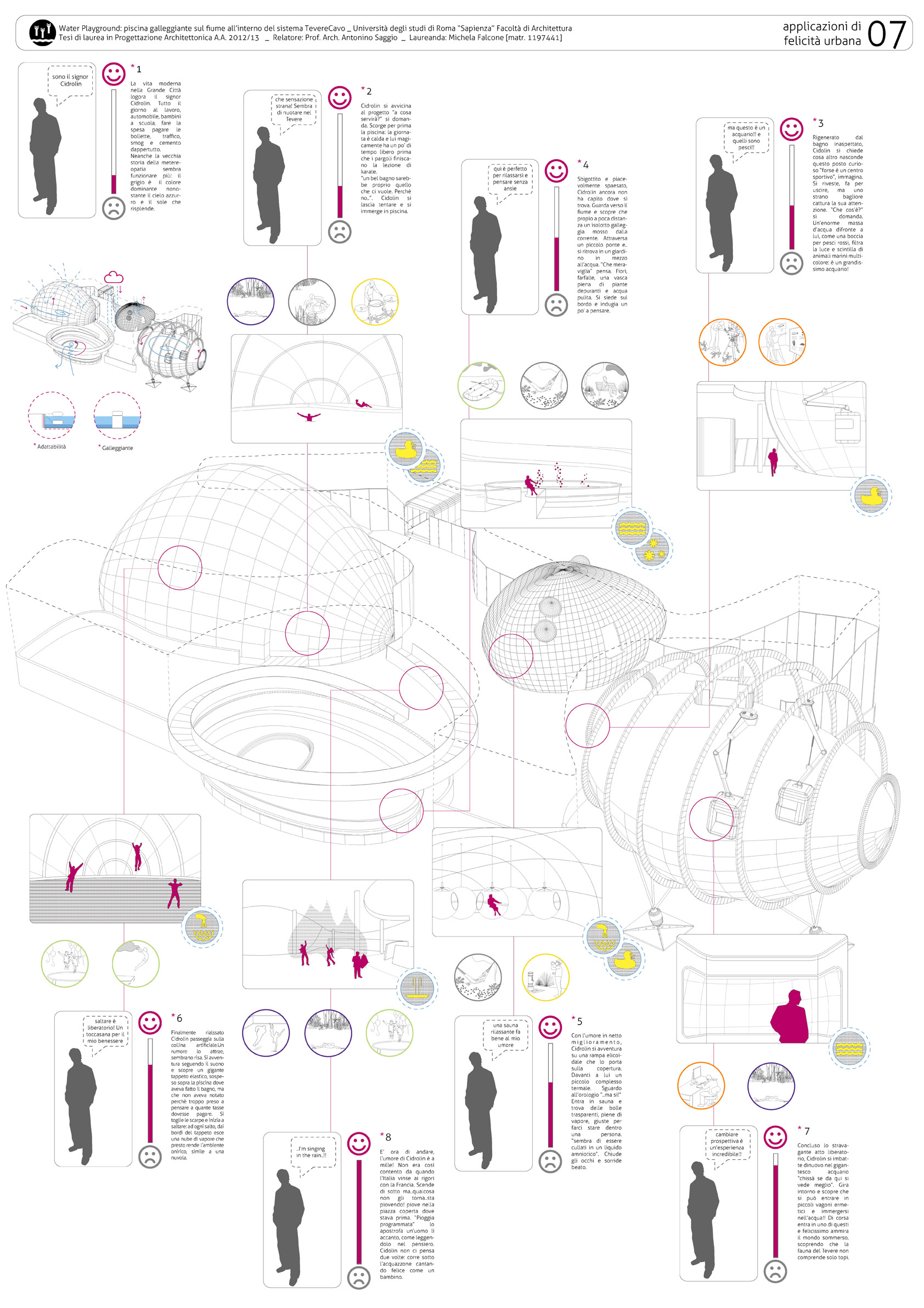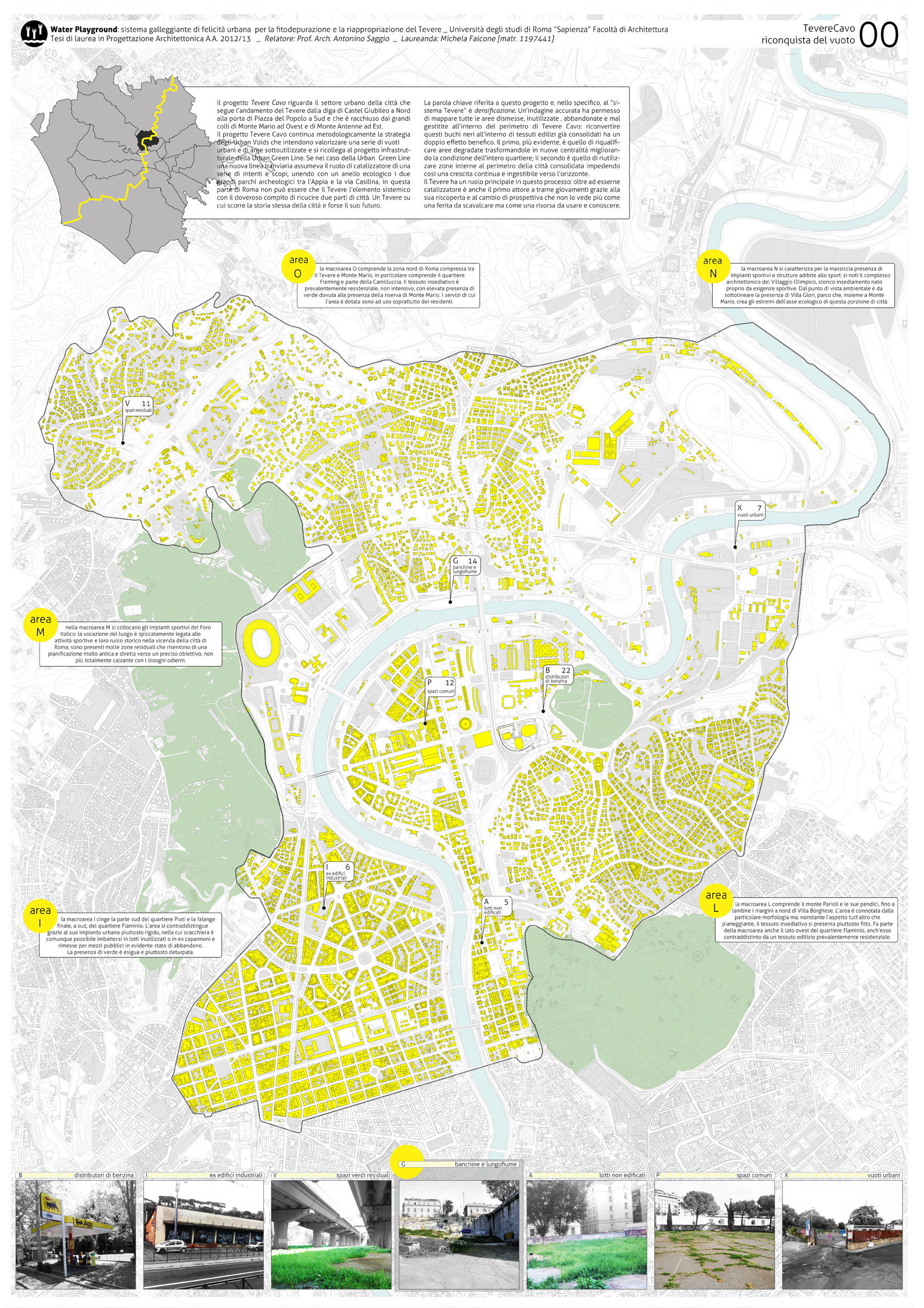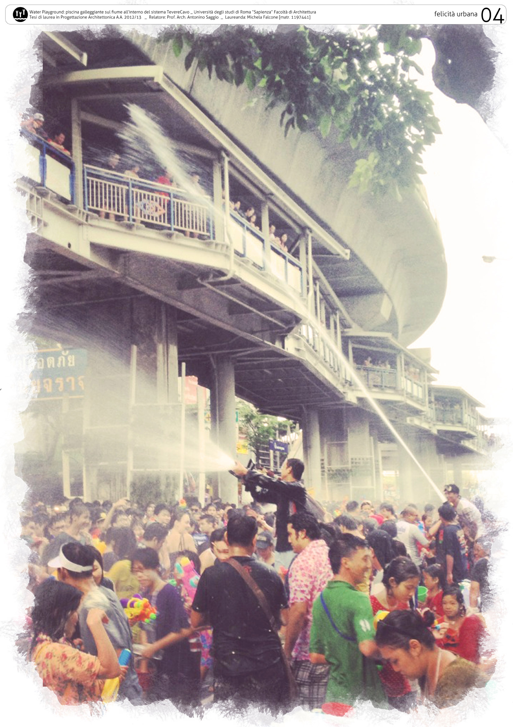 Molte città europee negli ultimi decenni hanno valorizzato fortemente il rapporto con il proprio fiume. Basti per fare un esempio pensare a Zurigo, a Friburgo a Berlino ma anche a molte altre. In questi casi sono stati operati massicci interventi di controllo ambientale e di disnquinamento e quello che per decenni era un ambito della città perduto, abbandonato e spesso pericoloso è tornato ad essere il centro della vita urbana. Gli abitanti vi svolgono attività sportive, ludiche, passeggiate a piedi ed in bicicletta e vi fanno il bagno l'estate. Il gradimento dei cittadini per l'ambiente urbano aumenta di molto i suoi coefficienti positivi. Il progetto "Water Playground" propone una progressiva riappropriazione del Tevere da parte degli abitanti attraverso dispositivi multi funzionali che sono allo stesso tempo ludico-sportivo e disinquinanti. Sono strutture galleggianti e mobili che possono permettere di cominciare ad invertire concretamente la tendenza verso il degrado e cominiciare a riavvicinare il Tevere ai suoi cittadini, in attesa di interventi ancora più generali. Da un'analisi trasversale del primo tratto urbano del corso del fiume, in particolare, è emersa la presenza di una duplice crisi che coinvolge la città di Roma e il modo in cui il Tevere viene percepito dai suoi abitanti: l'impossibilità di fruire direttamente il fiume (per le difficoltà di accessibilità, per l’incuria e per lo stesso inquinamento del fiume) e il silenzioso processo di “spossesso” dello spazio pubblico che a poco a poco sta divorando le zone ripariali ancora presenti in città.