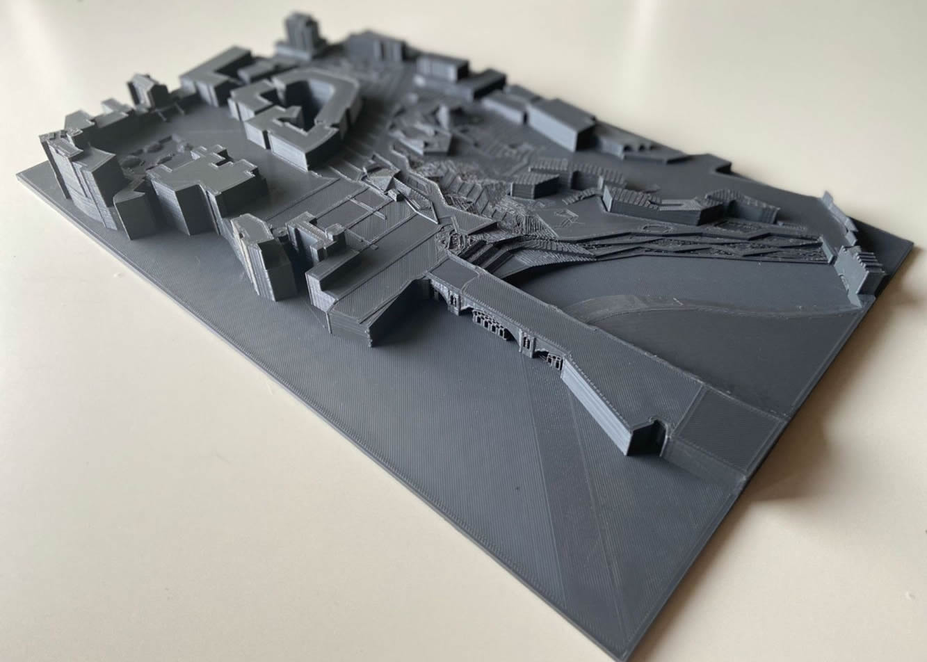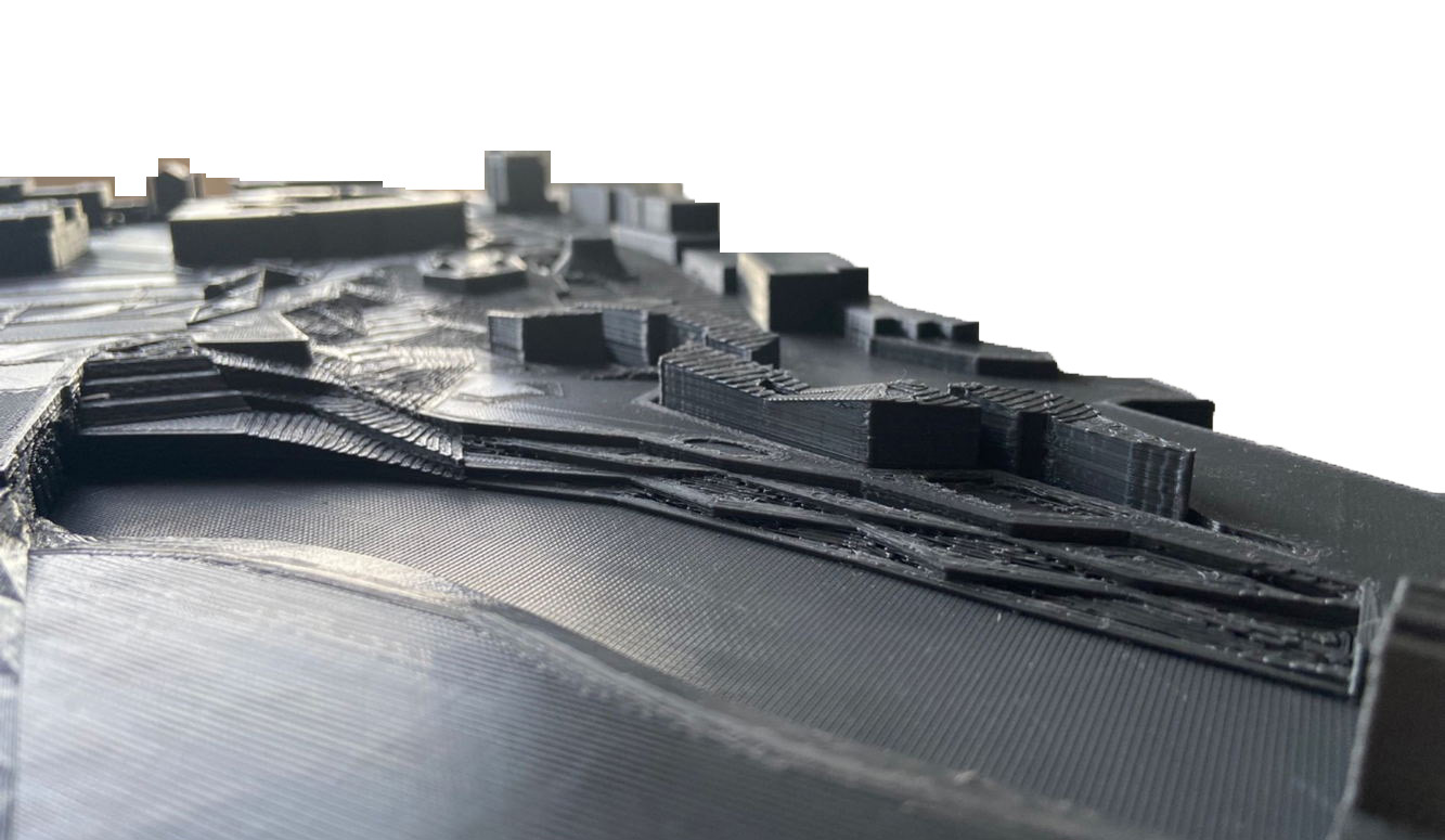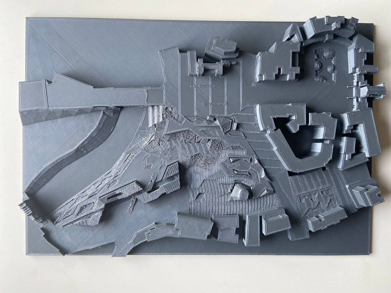 Per quanto concerne il concept delle aree limitrofe invece, sfruttando le differenze altimetriche del terreno e trattando lo scavo come frattura generante, si è ideato un sistema che si affaccia sul fiume Aniene e da quota +25.00 metri degrada, articolandosi su tre livelli, verso l’area di progetto posta invece a quota + 18.00 metri. La progettazione degli spazi esterni si serve di quattro delle dieci strategie riportate all’interno della dissertazione dottorale “Infrastrutture dell’acqua. Strategie adattive all’emergenza idrica dei mutamenti climatici” dell’arch. Gaetano De Francesco, in particolare quelle relative all’Assorbire, al Convogliare, al Corrugare e al Diramare, con l’intento di far fronte al rischio idrogeologico e, al contempo, caratterizzare in modo differente le diverse aree di progettoe disegnare armoniosamente spazi e presenza del verde.