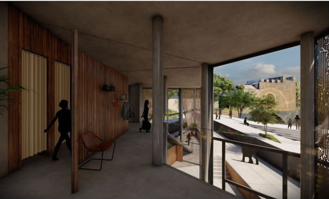 Per l’importanza storica del contesto e con l’intento di recuperare il rapporto tra il fiume ed il quartiere, andato perso nel tempo, il progetto include anche la riqualificazione delle aree limitrofe a quella di intervento.