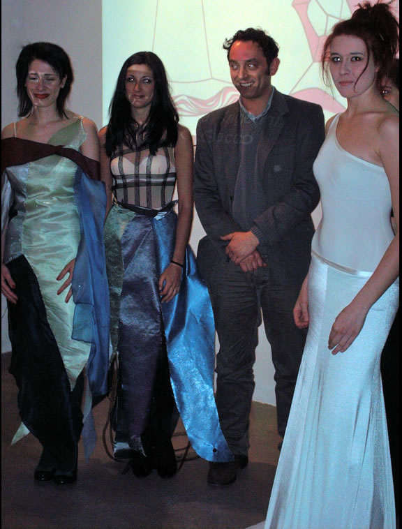 è stato un evento multidisciplinare che si è svolto sabato 21 marzo alla Galleria di Architettura di via dei Bruzi a San Lorenzo, Roma. Rosetta Angelini architetto e direttrice della Galleria ha presentato tre abiti appositamente realizzati e ispirati alle architetture di Toyo Ito, Frank Gehry e Zaha Hadid. Inframezzando commenti alle architetture dei tre maestri, la sfilata di moda e interventi di altri designer e performer l'intera serata è stata un'esperienza molto originale ed efficace per avvicinare la ricerca di architettura a quelle della moda, del design e dell'arte con un processo mai banale ma che ha trovato nella creatività e nel coraggio delle strade nuove di ricerca e comunicazione. Folto il pubblico. Dettagli sui performer, a breve nel sito della Galleria rassegna stampa