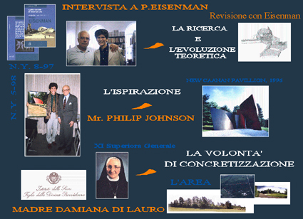 Il primo momento, come si può vedere dalla Tav. n° 0, è stata la possibilità di collaborare con l’architetto Peter Eisenman, dal quale dopo due anni di incontri è nata una piccola pubblicazione, riportata negli elaborati. Tale circostanza mi ha permesso di sviluppare una ricerca teoretica mirata ad un atteggiamento critico nei confronti del progetto.