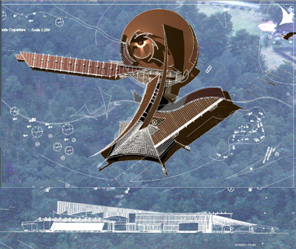 estratto: Il progetto è dotato di forte impegno architettonico attraverso una soluzione plastica con forte innesto di spazi liberi esterni entro la maglia costruita.L'impostazione dinamica dei corpi di fabbrica che si muovono liberamente nello spazio interagendo tra di loro secondo sistemi di forte intensità energetica, stabilisce una relazione di grande interesse con il paesaggio.
