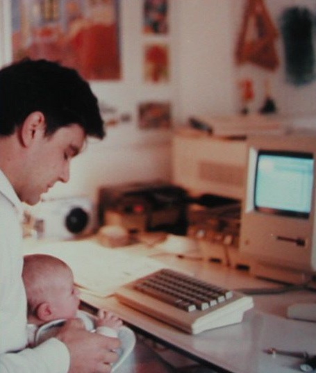 La storia di Steve Jobs è quella di un pollicino diventato gigante. TeenAger pressoché abbandonato, fa appena qualche annetto di College per poi intraprendere l'avventura che tutti conosciamo. Quando gli danno la laurea honoris causa a Standford fa un discorso memorabile. Spiega la forza del fare, la forza del lavorare, la curiosità dell'imparare. Aveva fatto nei suoi anni di incertezza un corso di calligrafia. Quanto di più assurdo e di più lontano dall'elettronica si potesse immaginare. Ma quando Steve con il suo manipolo di pirati creò il MAC si ricordò di quel corso e inventò le font che tutti oggi usiamo. Come Pollicino, nella vita, bisogna cospargere il nostro percorso di Sassolini, vengono negli anni riconnessi in maniera impensabile. A volte magica. Qui Raffaele Saggio all'età di due mesi mentre vive il suo Imprinting Macintoshiano. Oggi Raffaele piange con me la perdita di un gigante.