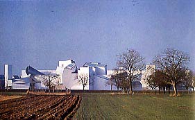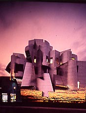 Opera di apertura di un nuovo ciclo. Le traiettorie nello spazio, la capacità di sagomare masse sinuose e dinamiche che rimbombano nell'aria e deformano l'atmosfera, le linee forze e le collisioni ricordano la plastica futurista. È architettura o scultura? Domande irrilevanti per Gehry, cui aveva già risposto Boccioni. "Nessuna paura è più stupida di quella che ci fa temere di uscire dall'arte che esercitiamo. Non v'è pittura, né scultura, né musica, né poesia, non v'è che creazione." Come dimostrano qui gli smaglianti interni.