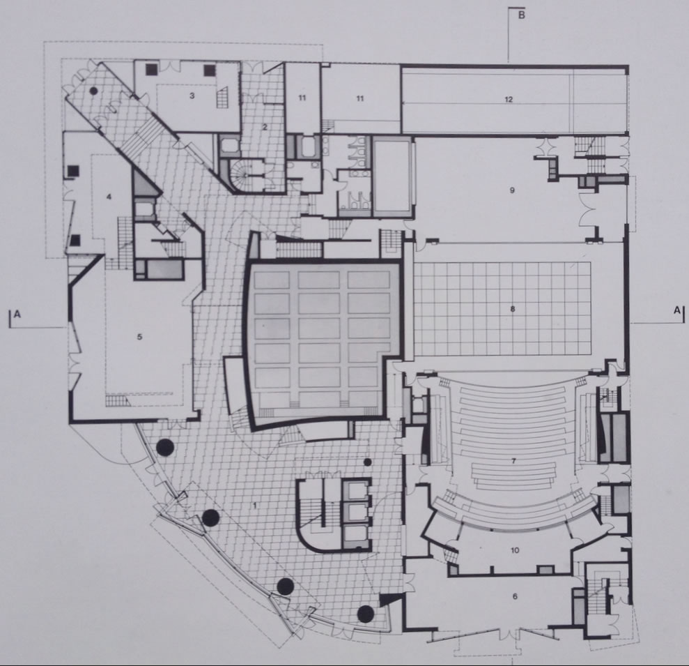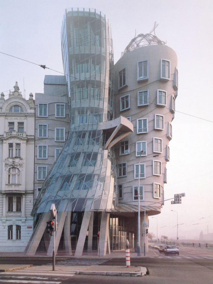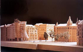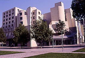 "Capolavoro dell'architettura moderna" merita una trattazione a sé, anche per capire gli aspetti dell'ideazione e della costruzione e le vicende dell'abbandono del committente. In ogni caso, sull'angolo verso il parco, si è di fronte a una delle sue più incandescenti creazioni. Volumi ora circolari, ora prismatici, ora rettilinei, ora inclinati sbattono uno sull'altro. Prevale la pietra, ma l'innesto della pensilina in ferro e vetro lancia l'opera nell'atmosfera. Nell'atrio riscopriamo la capacità dell'antico Gehry di circondare con oggetti plastici lo spazio pubblico, questa volta, naturalmente, introiettato.
