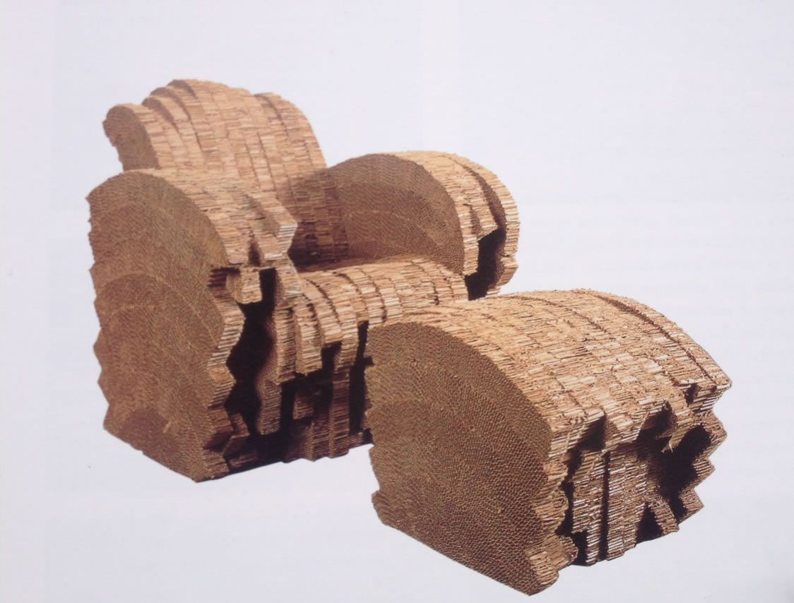 La mostra (un onore raro e una manifestazione controcorrente) crea la sensazione di essere dentro una delle sue architetture. L'entrata è attraverso un'ogiva rivestita di scaglie e illuminata da lampade in formica, la scultura di un pesce volge la testa verso un lucernario, i mobili in cartoncino realizzati dal 1969 sono inseriti in una stanza fatta dello stesso materiale, le scale sono accompagnate dalle sue foreste pietrificate.