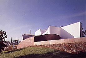 Il programma riguarda la produzione, lo studio e la diffusione di energie alternative e altrettanto stimolante è il sito con un fronte urbano e l'altro verso un cuneo di verde semi-agricolo. Il progetto presenta il ribaltamento di una precedente impostazione: nell'Edgemar i percorsi erano un liquido che scavava la massa, qui sono i fabbricati che si spandono fluidamente all'intorno. Gli uffici, le sale riunioni, la piccola centrale di energia, l'atrio creano una figura che può essere letta alternativamente come pieno o vuoto. È la presenza dell'architettura nel paesaggio la chiave o una sua interpretazione "idrogeologica" come vediamo nelle mappe delle aree di bacino dei fiumi?