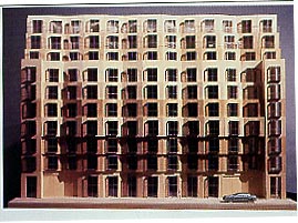 Guardiamo con molta attenzione allora questo recentissimo progetto per Times Square. Gehry innanzitutto parte da un rifiuto, non fa un macro pesce, un enorme binocolo o un mega televisore come avrebbe fatto a metà degli Ottanta perché sa che è una strada senza uscita. Non propone neanche un macro oggetto plastico, come a Bilbao, perché qui ha il coraggio di superare anche la sua ultima maniera. Parte in sordina con quello che, eliminato quanto sopra, appare l'unico inizio praticabile: un'ossatura scarnificata con appesi, graziosamente ma nulla più, una serie di schermi. Sente però che l'idea è misera e procede oltre. Nel progetto intermedio inserisce ondeggianti lamiere nella griglia e un grappolo di rete metallica in cima, a mo' di monumento a se stesso. È ancora deludente, ma in nuce ha la soluzione.
