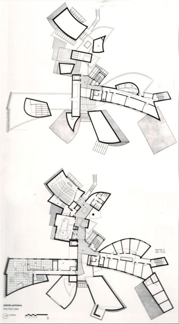 Con il Museo per la Vitra nella seconda metà degli anni Ottanta, Gehry individua un'altra arma: è la traiettoria plastica, di boccioniana memoria. Architettura e scultura si fondono una con l'altra per irradiare di sé l'atmosfera lanciando traiettorie che scuotono l'intorno. Sotto questa luce si possono vedere tre grandi opere come il Centro americano di Parigi, dove gli scontri tra le masse si rafforzano nell'interpretazione del luogo, l'Auditorium Disney di Los Angeles dove la tensione dell'architettura a pervadere di sé l'esterno è ispirata al movimento vegetale di un fiore e soprattutto l'oggi inaugurato Museo di Bilbao, in cui volumi meccanici si incastrano e si espandono a partire da una intersezione urbana.