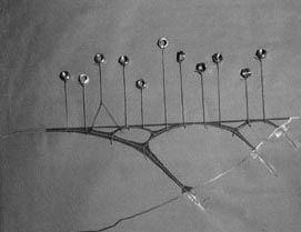 da tiranti con sviluppo radiale a partire dai tre supporti vericali. In