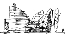 Un'ambiguità tra piano e massa risolve l'espressività delle parti. Il progetto evita i volumi conclusi e lancia i suoi piani liberi e aguzzi contro il cielo. Ma gli strumenti classici di controllo della forma (la prospettiva, la geometria) rientrano in gioco per creare, da pochi punti di vista privilegiati, delle scene unitarie. Sono illusioni, però - come nel teatro Olimpico di Palladio - perché quando l'osservatore si sposta, i quadri si spezzano e i piani riacquistano la loro valenza astratta.