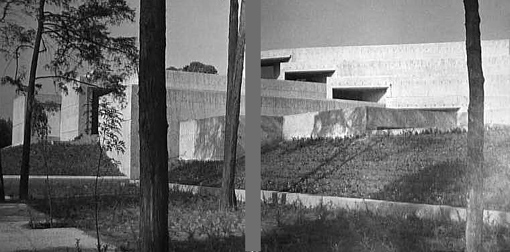 I muri, pesanti, stratificati, forti sono la materia prima di questa architettura. Grandi superfici solide in cemento armato, a volte piane a volte curve, rifrangono la luce grazie all'inserimento di aggregati di grandi dimensioni o di frammenti di rocce e marmo attraverso una tecnica innovativa che è stata progressivamente affinata a partire dal 1968.
