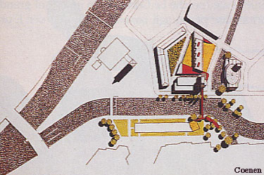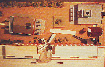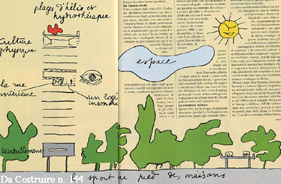 È il modo diverso di concepire il suolo che permette l'alternativa. Il terreno, prima parcellizzato, diventa un bene pubblico e si configura come una lastra piana, prevalentemente verde, con alberi, piccoli sentieri. È un vassoio sul quale - sollevati su pilastri in modo da non interrompere la continuità del terreno - si posano gli edifici e, di nuovo sopraelevate, corrono su viadotti le strade.