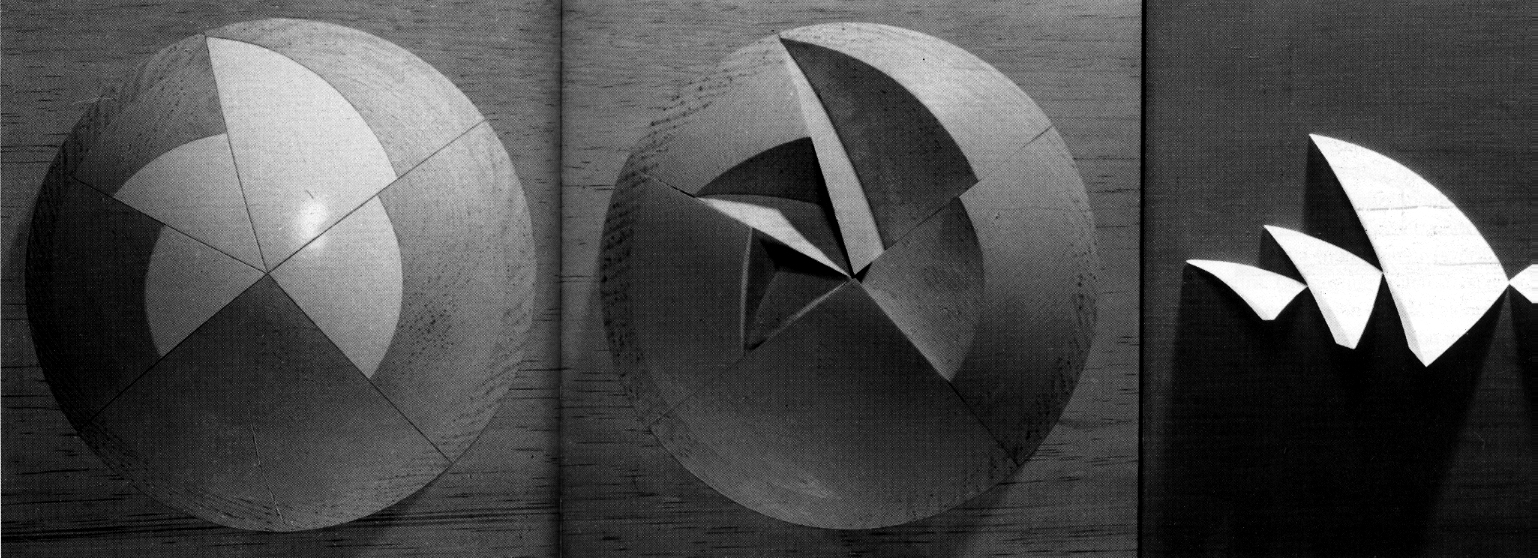 La grandezza di Utzon è nell’avere contemporaneamente due chiavi per affrontare le sfide della contemporaneità. La prima, ed è la più appariscente, ha a che vedere con il ritorno, per la prima volta in piena legittimità dentro il moderno, della ricerca spirituale, simbolica, rappresentativa e, per questa via monumentale, della architettura. "Una cattedrale mondana della civiltà" scrisse Carl Hammerschmidt nel ‘57 individuando il centro ispiratore dell’Opera. Su un basamento Utzon erge tre composizioni di gusci che risultano svincolate dalla funzione interna. Attraverso questa rottura tra forma e funzione riesce a liberare l’immagine.