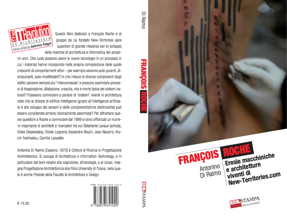 Questo libro dedicato a François Roche e al gruppo da lui fondato New-Territories apre questioni di grande rilevanza per lo sviluppo delle ricerche di architettura e informatica dei prossimi anni. Che ruolo possono avere le nuove tecnologie in un processo in cui i materiali hanno incorporate nella propria composizione delle quotecrescenti di comportamenti attivi – per esempio saranno auto-pulenti, disinquinanti, auto-modificabili? In che misura le diverse componenti degliedifici saranno sempre più “interconnesse” e possono assimilare processi di traspirazione, dilatazione, crescita, vita e morte tipica dei sistemi naturali? Possiamo cominciare a parlare di “sistemi” viventi in architettura visto che la dizione di edificio intelligente (grazie all’intelligenza artificiale e allo sviluppo dei sensori e delle componentistiche elettroniche) può essere considerata almeno teoricamente assimilata? Per affrontare queste questioni a Roche a cominciare dal 1989 si sono affiancati un numero importante di architetti e ricercatori tra cui Stéphanie Lavaux (artista),Gilles Desevedavy, Olivier Legrand, Alexandre Boulin, Jean Navarro, Kiu-chi Toshikatsu, Camille Lacadée.