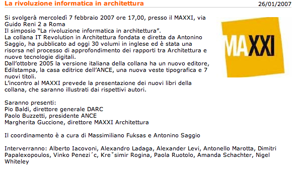 Simposio MAxxi La rivoluzione Informatica in architettura