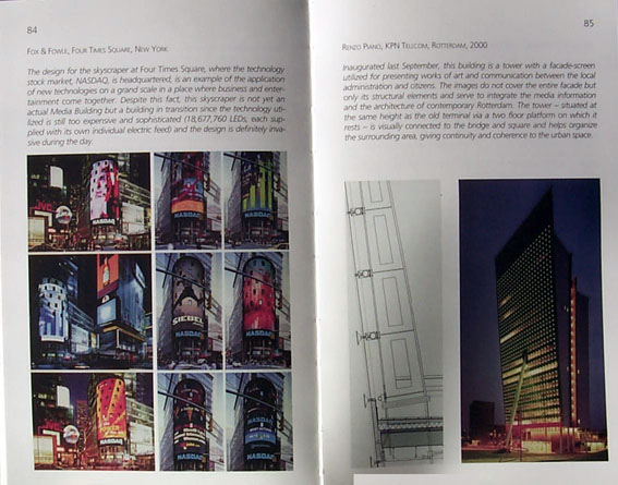 The rapid development of Information Technology has also effected the layout and planning of our towns. Increasingly, physical structures are being covered with a veneer of visual-virtual light architecture which makes use of the new media to alter existing buildings and quarters, enriching and enhancing them. The townscape of tomorrow will become a huge, multilayered screen, which will draw the passers-by into an interactive electronic world.