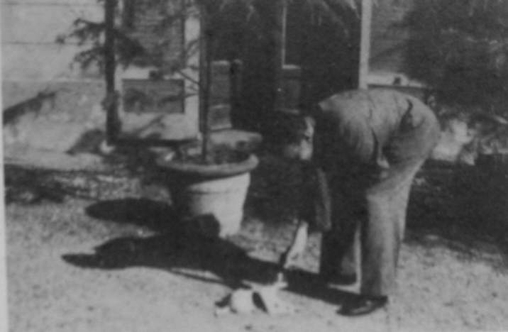 "Lavorava in una piccola stanza piena di disegni e di libri col gatto che gli passeggiava fra le mani. Lavorava spesso di notte per non essere disturbato; al mattino restava a letto fino a tardi, sempre col suo fedele gattone [pare, 'Battista'] steso ai piedi." (Scalini 68 p. 61).