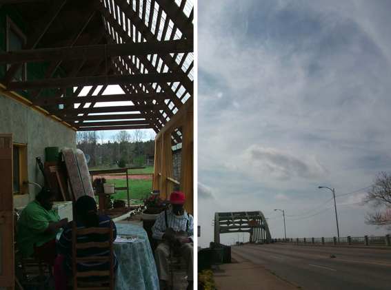 Sometime we will talk more about this. I will now move on to crisis, and then I will bring the lecture to an end. For me, the concept of crisis is the fact that we as architects have responsibility and have to face issues, and one of the issues of these last few years is to understand the impact of Information Technology on our own field and to search for answers. When I was invited to give this lecture, I realised that there were two things that I particularly wanted to show you. These two things are not necessarily completely related to what I have said. Each of you can put these things into whatever framework you wish. For my own part, I am totally fascinated by these two experiences that I am going to show you in a second, because they deal with constructions, they deal with education, and they have the touch of need that I think is absolutely crucial in making important architecture. This is the first one. Some of you probably know what I am talking about. We are in the American deep south, in Alabama. This is the famous bridge on which Martin Luther King started his march in the 70’s (16.).
