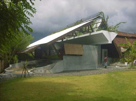 And then I want to show you one last project, again very simple. This was built by an architect who is a very good friend of mine, Giovanni D’Ambrosio, who for many years found little work in Italy and worked almost exclusively in Asia. Specifically I wanted to show you this little school, because it is a kind of a prototype that illustrates this sense of mood, the profound mood of a construction; and I think this is a quality that must be kept in whatever you do. This school only cost around 10,000 euros, and it is based on an idea that you can understand immediately in the section. The key idea is this beam (19) This beam, of reinforced concrete, resting on a brick wall, is the only high technology in the building. Now this beam is many things in one, as good architecture generally is. Not only is it the support of this light-weight structure of two roofs done in different ways, but it is also the green heart of the whole thing, because on this beam, which is shaped like a planter, different kinds of vegetables grow, so the whole concept is also a poetic idea in that the little children can follow the two natural processes of growth and learning. And what is also fascinating to me here is how he, from Rome, was able to build this in Bali. At that time he was not an IT person, and he still he is not very IT-oriented. Everything was based on the fax, on fax technology. It is a very simple system of modules, with very straightforward information that was passed from the thinker through the geometry to the builder. So that process would probably be completely different today; but if by fundamentals we mean something close to this, then I am with you. Thank you.