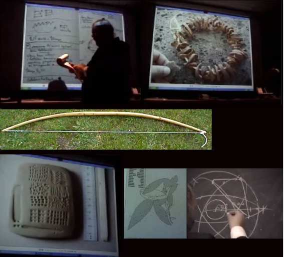 One thing that I think is quite interesting, and here we are approaching the theme of the cord, is this right here. What you see here is a tool that he found published in a book by an anthropologist. The book said that this was an amulet used for some symbolic reasons by an ancient population. What Costantin Morosin did instead was to explain and to prove that this is not an amulet but a compass: n ancient compass. And here (3.) you see how to use it.