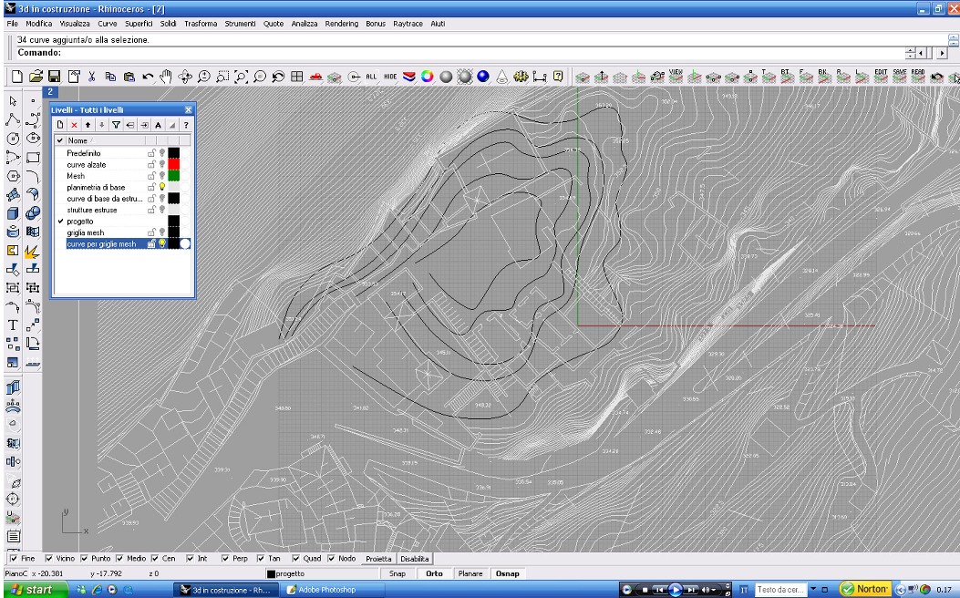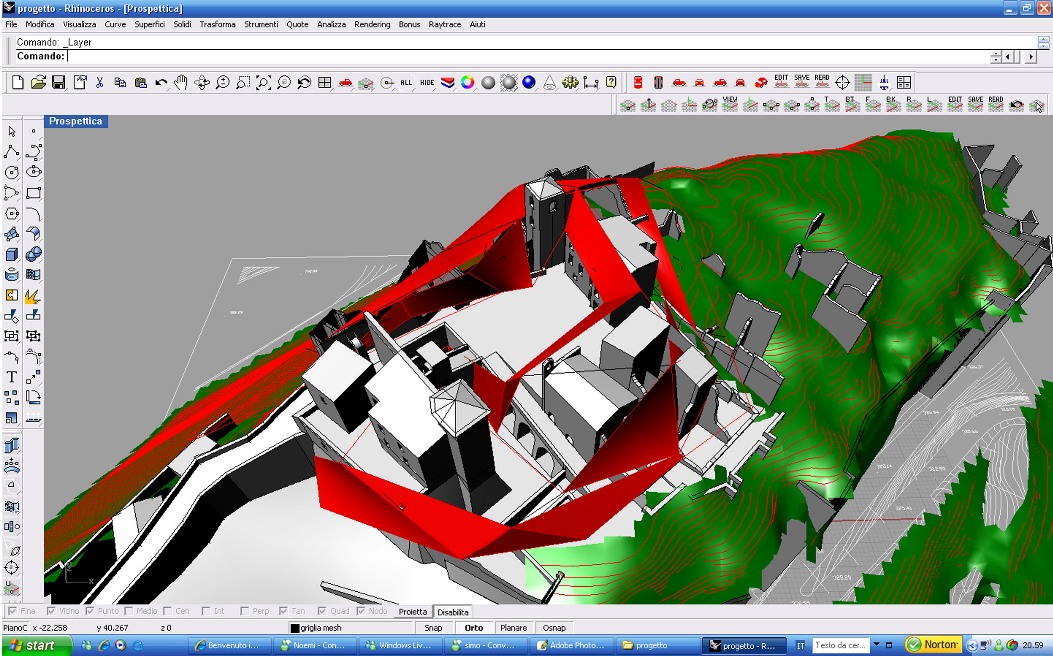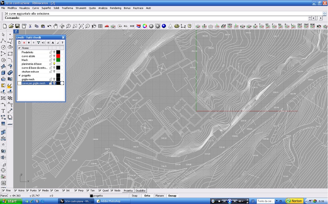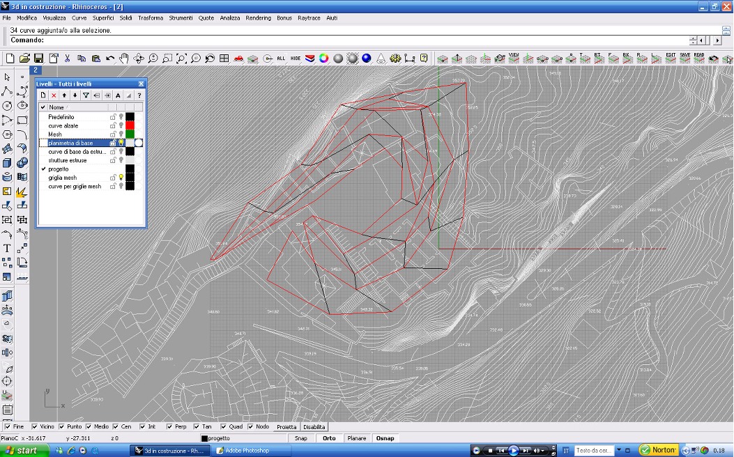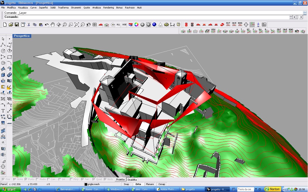 Un primo approccio ci ha portato all'idea di sovrapporre una griglia alla planimetria e deformarla seguendo l'andamento del terreno; ma ciò avrebbe portato all'imposizione di un qualcosa di artificiale per ill fatto che il tipico sviluppo dei borghi antichi segue il terreno e non è mai ortogonale.