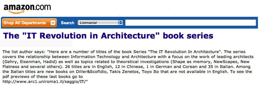 Examples from Antonino Saggio Chair at La Sapienza University Rone >