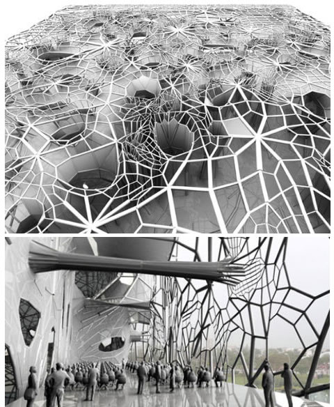 Human beings from the electronic and post-industrial civilization can re-settle their account with nature because if the manufacturing industry dominated and exploited natural resources, then the information technology industry can help increase their appreciation and conservation. At least in technologically advanced countries, this structural change of direction opens up the opportunity for a “compensation” of historic proportions. Green areas, nature and structures for leisure time activities can all now be placed in areas built up frequently with very high density construction. In other words, precisely because of those reasons we have already mentioned, the process is not “on the surface”. We are not dealing with circumscribing and fencing off green areas to contrast with those other residential, tertiary and managerial areas as was part of the logic of organizing by dividing the industrial city. On the contrary, we mean creating new integrated parts of the city where that interacting group of activities typical of the information society exist alongside a powerful presence of nature. Naturally, the tools change as well. If zoning was the method for planning the industrial city through the division into homogeneous zones that were distinct among themselves and simulated the Tayloristic concept of industrial production, then multi-functionality and integration have now become the necessities for the information city and its new anti-zoning areas. The nature intended in this concept of landscape is no longer floral or “art nouveau-style”; neither is it the nature of the masters of the Organic Architecture, counterpoint to the mechanical and industrial world. This concept of nature has in fact become much more complex, much more difficult, much more “hidden” and is also investigated by architects and designers with an anti-romantic eye through the formalisms of contemporary science (fractals, DNA, atoms, the leaps of an expanding universe, the relationship between life and matter, topological geometry, animated forms). In other words, through the categories of complexity. Hidden in this context are the figures of flows, the wave, whirlpools, crevasses and liquid crystals; fluidity becomes the key word. It describes the constant mutation of information and places architecture face to face with the most advanced research frontiers, from biology to engineering, to the new fertile areas of superimposition such as morphogenesis, bioengineering or biotechnology.