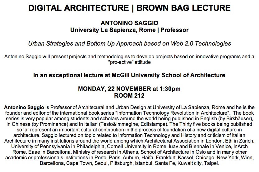 Seminar at McGill University, Department of Architecture,Montreal special Thanks to professor Aaron Sprecher