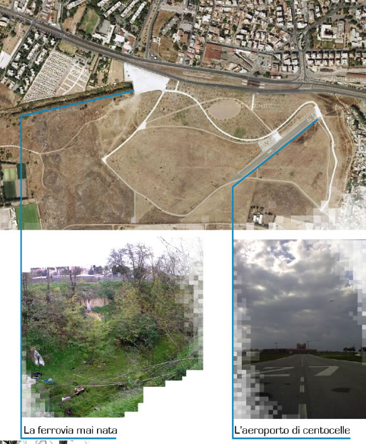 Trasformazione del Parco di Centocelle in un parco tematico archeologico - aeronautico. Via Casilina, Roma.