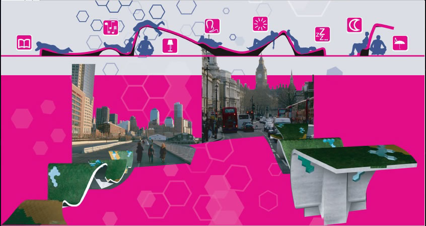 Among the research work of Nitro is the project Memnostyle for new issues of cemetery space that integrates land treatments, architecture and new hybrid design elements, the project “Urban Eirey” that proposes an integrated element for urban situation that integrates leisure sound and air treatment and the built prototype “Electronic Palm” (an hybrid object half natural half highly technological that uses Optical fibers, sound and sensors)