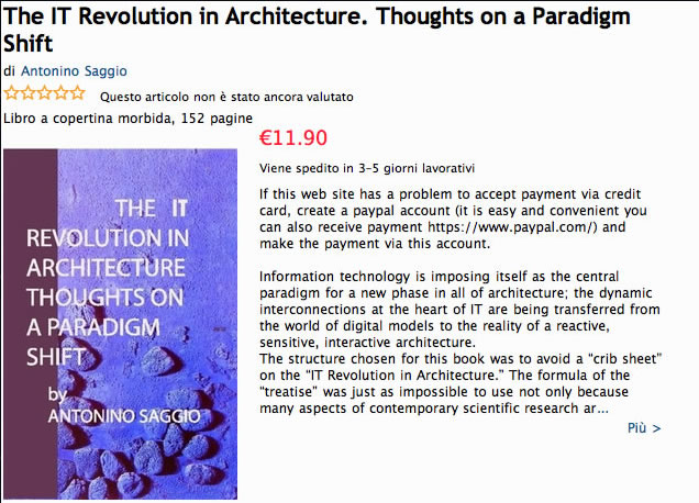 1. Antonino Saggio, "Informazione Materia Prima dell'Architettura", Op. Cit., # 118, September 2003 (pp. 5-10). >
