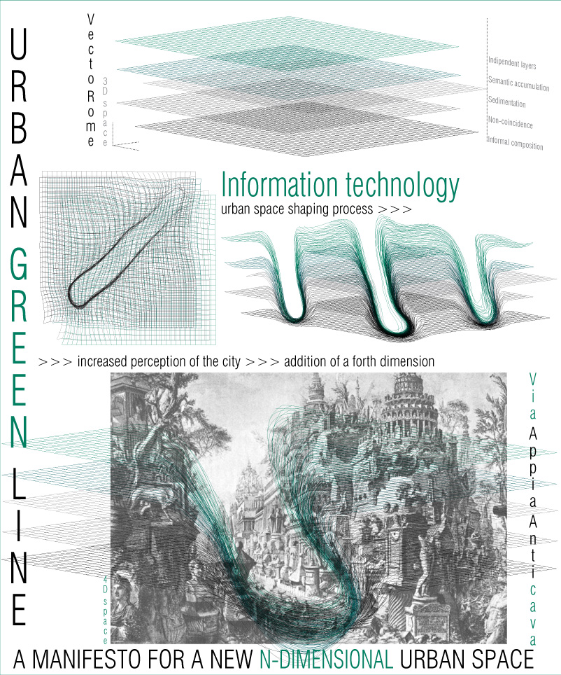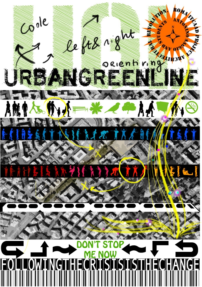 Sulla base del proprio primissimo concept illustrato già sul sito (e sue succesive modifiche), sulla base di un suo approfondimento ulteriore, elaborare uno schema o immgine di primissima indicazione concettuale, ma grafica che possa essere usata anche come una sorta di manifesto per la Urban Green Line. La dimensione deve essere esattamente di 34 cm x 23,8 cm, la versione web può essere a 72 dpi e pubblicata nel sito ma è importante che il documento sia a 300 dpi per poter essere eventualmente messo in stampa.