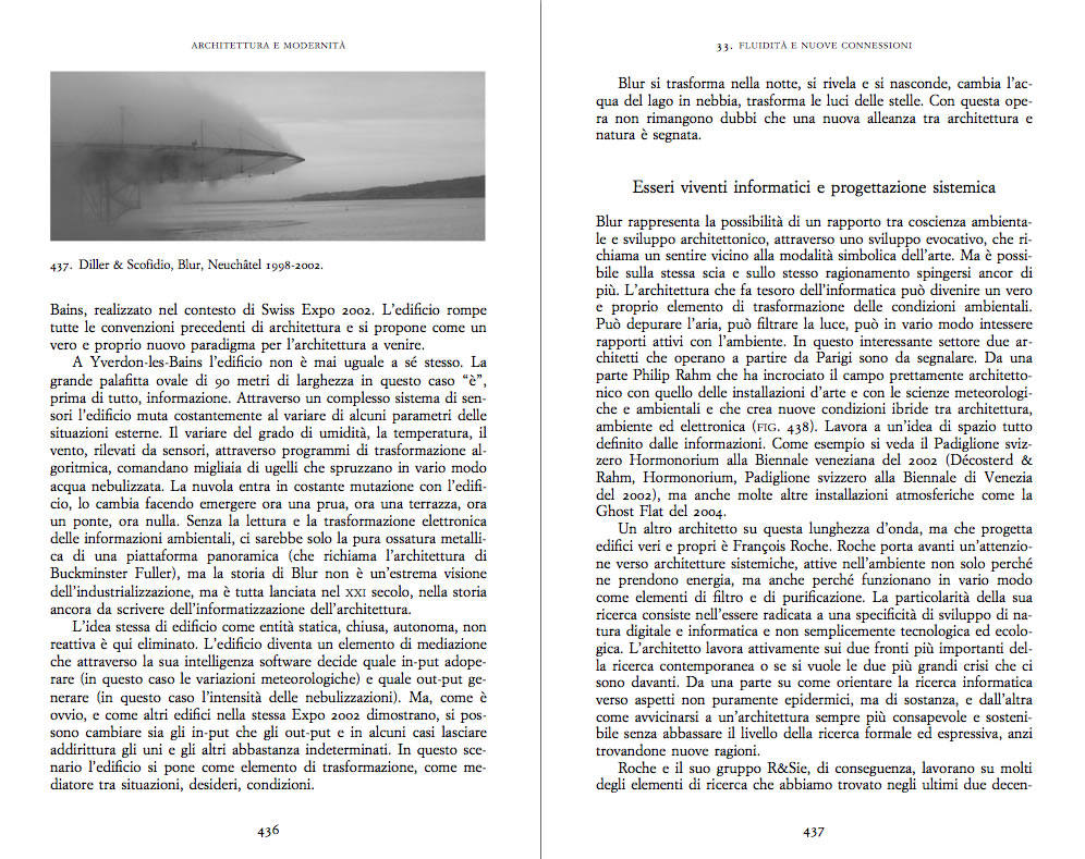 L'ultima parte del Libro Architettura e Modernità descrive le ricerche più avanzate in architettura in rapporto alla Rivoluzione Informatica anche nel settore dell'emergenza di un paradigma «Bio»