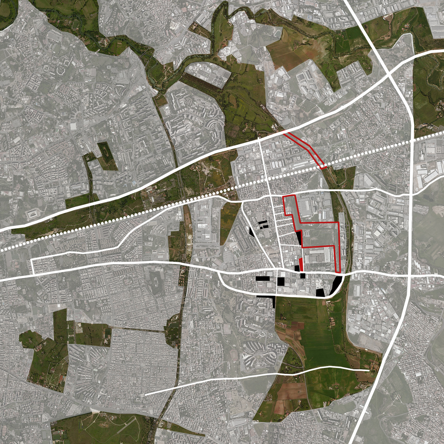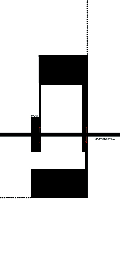 L’idea dell’approccio proposto nasce dall’intenzione di vedere nel Maam un potenziale spazio pubblico, da restituire, in tempi futuri, alla città tutta. In questa prospettiva è necessario allargare lo sguardo alla scala urbana, ancor di più se l’area presa in analisi si colloca su una delle strade consolari romane, infrastrutture che legano, fin dalla loro origine, il centro della città al territorio extra-urbano. L’obiettivo quindi è quello di inquadrare l’area in esame all’interno di un sistema più esteso che tenga insieme una serie di vuoti urbani, creando una nuova rete di connessioni tra parti di città attualmente confinate in una condizione di frammentarietà e di isolamento, che non permette un reale loro utilizzo e vitalità.