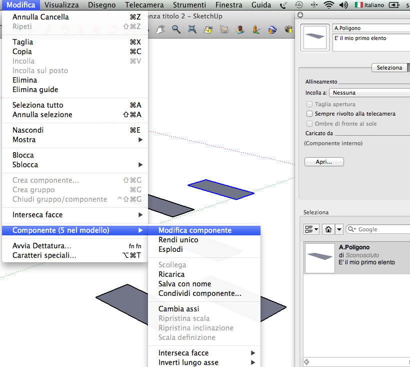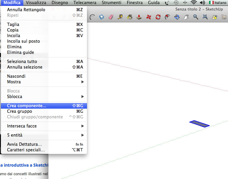 In skect up selezionare un elemento e nel menu andare in crea componete