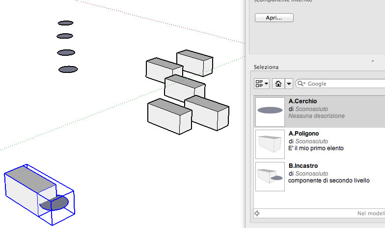 Poi le slezione entrambe e chiedo di nuovo!!!! Crea Componente.. Ho creato una componente di secondo livello!!! che ne combinanto due di primo. La chiamo B.Incastro