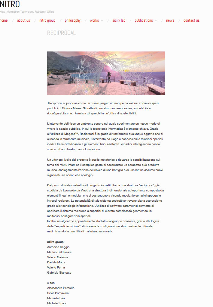nITro Group: Partners in charge Valerio Galeone, Dario Pompei Designers Luca Bregni, Gaetano De Francesco, Giuseppe D’Emilio, Antonio De Pasquale, Rosamaria Faralli, Valerio Galeone, Davide Motta, Dario Pompei Interactive Designer Valerio Galeone Team Rosetta Angelini, Luca Bregni, Gaetano De Francesco, Giuseppe D’Emilio, Antonio De Pasquale, Rosamaria Faralli , Denise Franzè, Valerio Galeone, Saverio Massaro, Davide Motta, Dario Pompei, Antonino Saggio, Angelica Sansonetti, Liborio Sforza Collaborators The FabHub, deltastudio Photographs Rosamaria Faralli (FaRo Image)