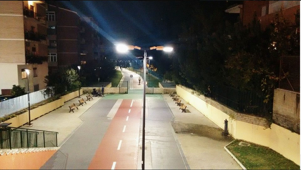 A Roma l'unica infrastruttura che ha alcuni carattei simili e la Ciclo pedonale di Mone Mario. Consiglio di andare a studiarla, possibilmente in bici, magari scendendo in una delle stazioni